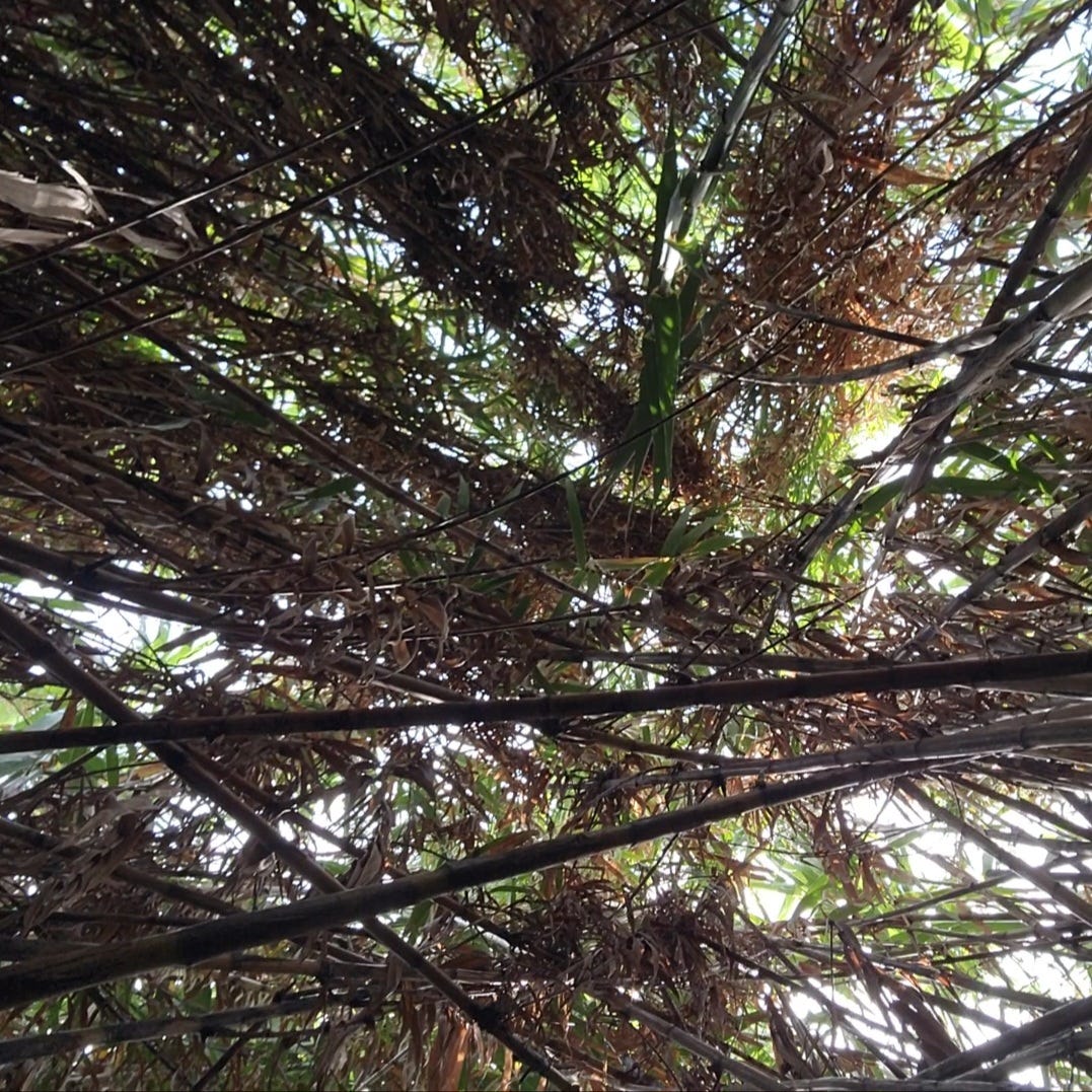 As I approached the water, the path turned into a bamboo covered precipice. I jumped into the ravine where there was clearer footing. Parts of the ravine were clogged with copious clothing. It was sad to see the pollution but it had a beauty too. The patterns and weaves of the fabrics made their way down the ravine mixed with bamboo, glass, pottery, and stone, creating a convoluted timeline. This is where my happiness lies; climbing down the waterfalls of the ravine raking around to find those bits and pieces of the human timeline. Down the path where the lost socks gather and volunteer themselves as rock sacks is another lithic literature library. This is not sea glass as I see it. They are old napped bottles. When some were drinking fine port with silverware. Others were using the refuse as resource to create tools. The stone age is still here.
